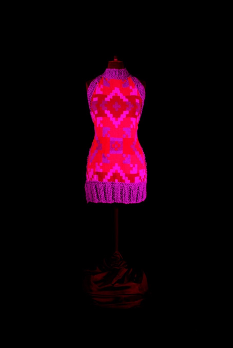 Object: Experimental Garments Materials: Wool, filtered light Programming: Brother KH881 Manufacture: Brother KH881 Collaboration: Phoenix Dance Theatre